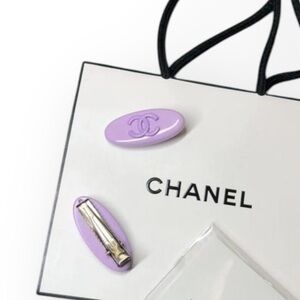 CHANEL 2Pc Purple/Purple CC Logo Oval Hair Clips