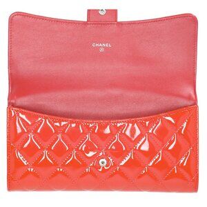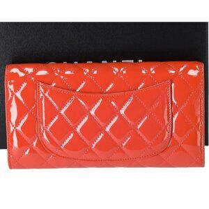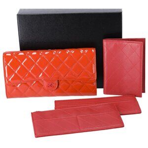 CHANEL 4 in 1 Wallet Orange Patent Leather Passport Holder Coin Card Pouch