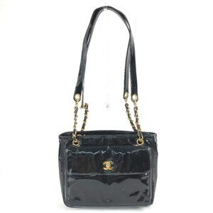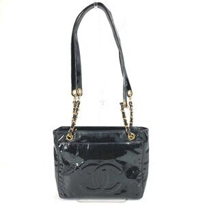 CHANEL A08036 CC CC Mark logo Tote Bag Chain Shoulder Bag enamel Black/Gold