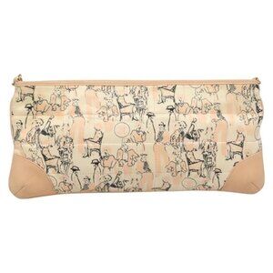 CHANEL Accessory Pouch Silk Beige Gold CC Auth 125970