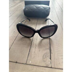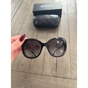 CHANEL Acetate Polarized Butterfly Winter Pearl Sunglasses 5339H Black