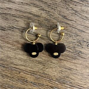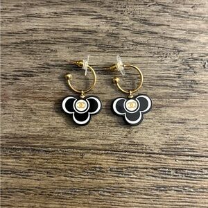 These very chic hoop earrings feature a dangling flower Chanel CC pendant that is enameled in black & white.