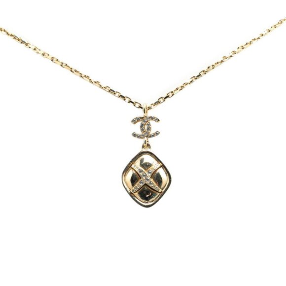 CHANEL Authentic Gold Diamond Logo Necklace
