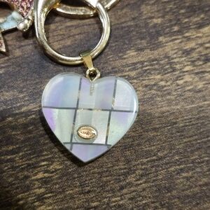 CHANEL Authentic Irridecent Heart Charm Upcycled W/ Gold and Pink Bow Keychain20