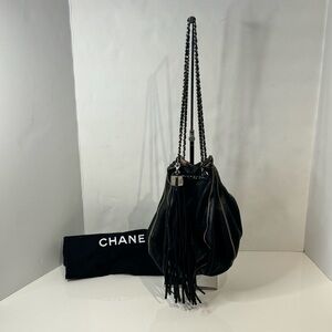 Gorgeous leather Channel bag with silk lining and detachable charm