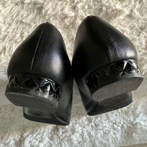 CHANEL BLACK LEATHER & PATENT LEATHER FLATS