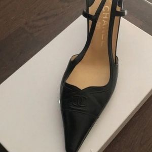 CHANEL BLACK LEATHER SLING BACK PUMPS