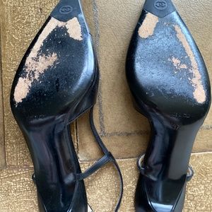 CHANEL BLACK LEATHER SLING BACK PUMPS. GREAT CONDITION. SIZE 7.