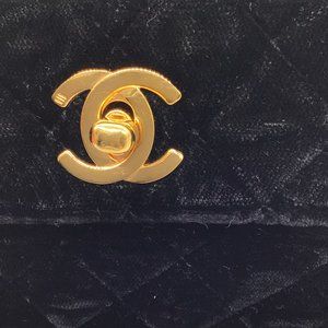 Description: Chanel Black Vintage 80's Quilted Velvet Mini Flap Bag