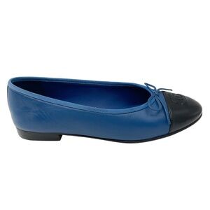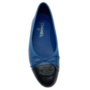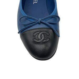 Chanel Blue / Black CC Logo Bow Detail Lambskin Leather Ballet Flats