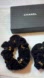 CHANEL Beaute Elegant Black Scrunchies with Gold Lettering