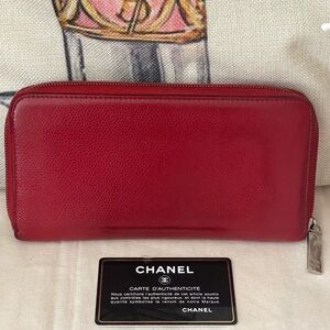 CHANEL Beautiful Caviar Large CC Timeless Zip Around Wallet in Red⭐️W/COA & CARD