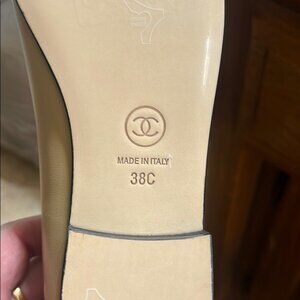 CHANEL Beige Lambskin Cap Toe Ballerina Flats