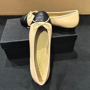 Brand New CHANEL Lambskin Cap Toe Ballerina Flats in Beige Black