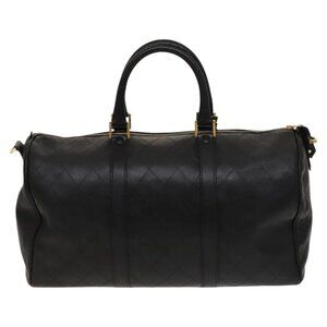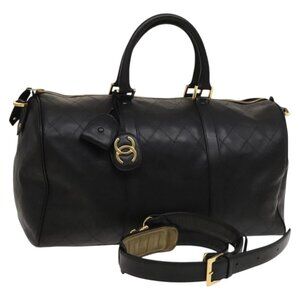 CHANEL Bicolore Boston Bag Leather 2way Black Gold CC Auth PP719