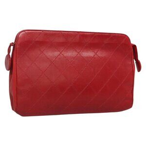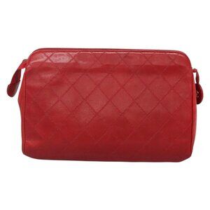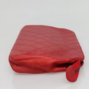 CHANEL Bicolore Clutch Bag Lamb Skin Red Gold CC Auth 132420