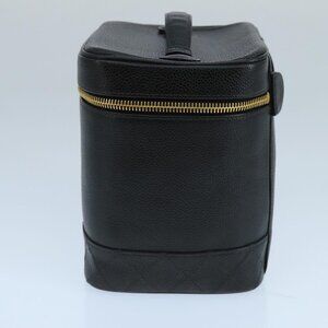 CHANEL Bicolore Vanity Cosmetic Pouch Grained Calf Skin Black Gold CC Auth