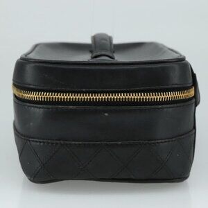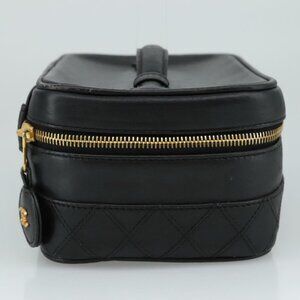 CHANEL Bicolore Vanity Hand Bag Leather Black Gold CC Auth