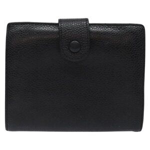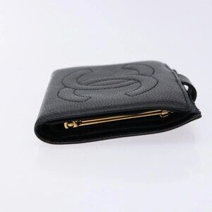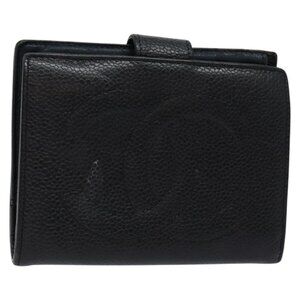 CHANEL Bifold Wallet Grained Calf Skin Black Gold CC Auth