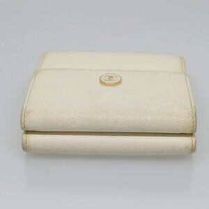 CHANEL Bifold Wallet Leather White Gold CC Auth