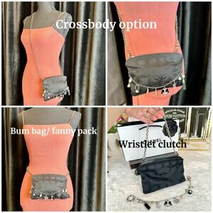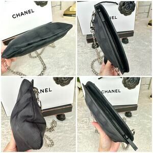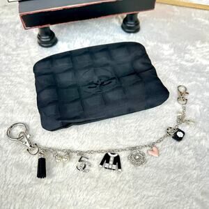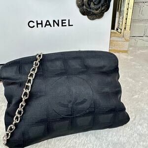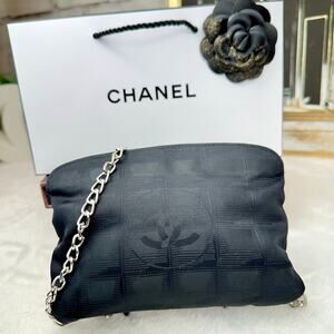 CHANEL Black Canvas New Travel Line Pouch wristlet, Crossbody Bag with Chains