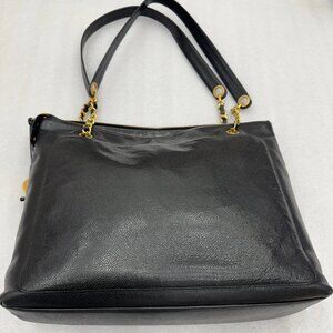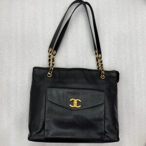 CHANEL Black Caviar leather Large tote/Shoulder bag with Front Pocket