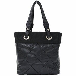 CHANEL Black Coated Canvas Tote Bag