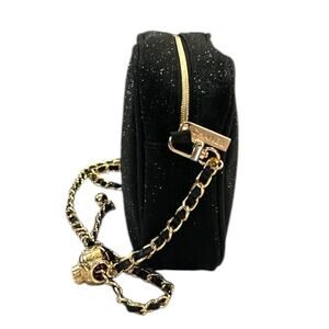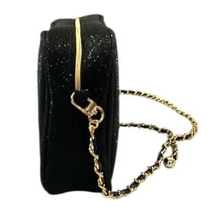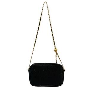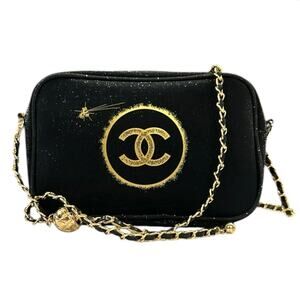 Stylish CHANEL crossbody bag in sleek black. Features iconic gold accents and chain. Ideal for chic outings.