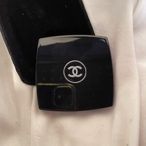 Sleek CHANEL compact with dual mirrors. Ideal for quick touch-ups. Comes in original packaging, film intact on both mirrors with Chanel embossed felt pouch.