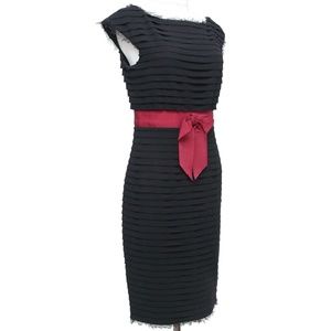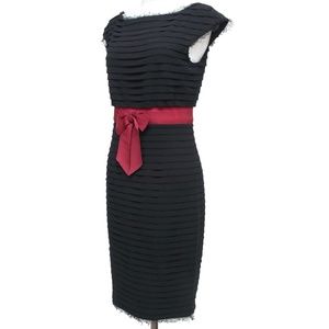 CHANEL Black Dress Cap Sleeve Cocktail Evening Tiered Bow Sheath Wool Sz 38
