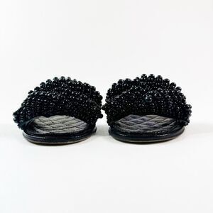CHANEL Fantasy Calfskin Black Leather Chunky Beaded CC Sandals Size 37 US 6.5 Mules Open Toe Slides