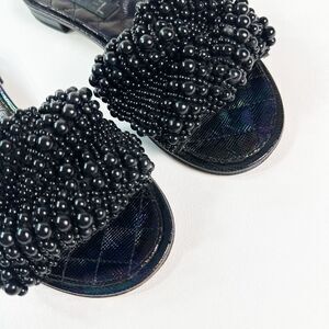 CHANEL Black Fantasy Pearl Cord Sandals Size 37 Mules Open Toe Slides CC Flat
