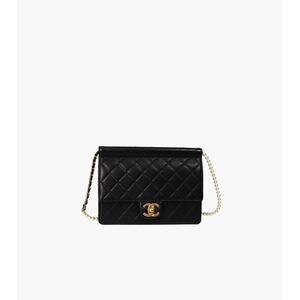 CHANEL Black Flap Pearl Chain Shoulder Bag A-A34111