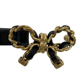 CHANEL - Black Gold Lambskin Hardware Belt Gold hardware 938-080125