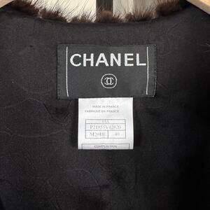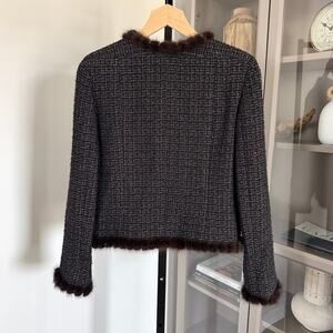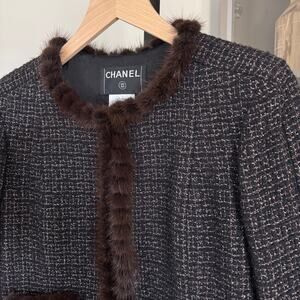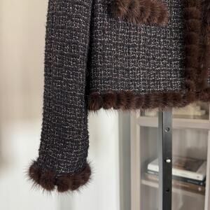 CHANEL BLACK TWEED WOOL BLEND BROWN MINK FUR TRIM BLAZER