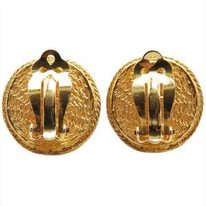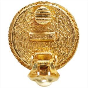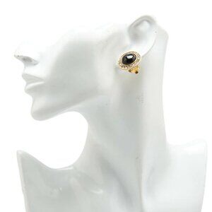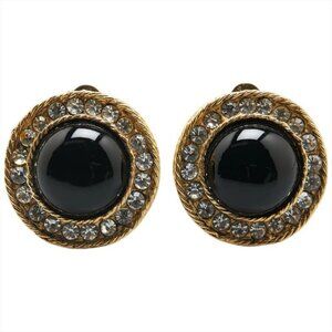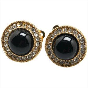 CHANEL Black Gripoix Rhinestone Round Clip-On Earrings Gold Tone Auth #7953