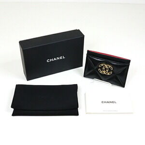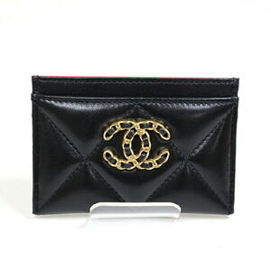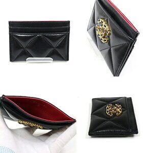CHANEL Black Lambskin Leather Card Holder