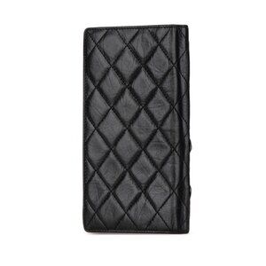 CHANEL Black Lambskin Leather Logo Wallet
