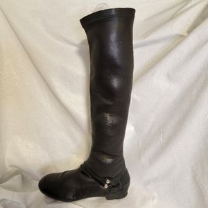 CHANEL Black Lambskin Riding Style Boots 36