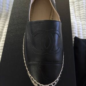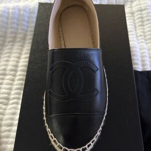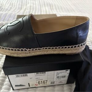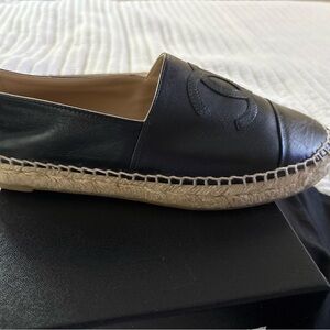 CHANEL Black Leather Espadrilles. Size 7. In good condition. Authentic Chanel