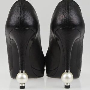 CHANEL Black Leather With Faux Pearl Pumps Size 7/37.5