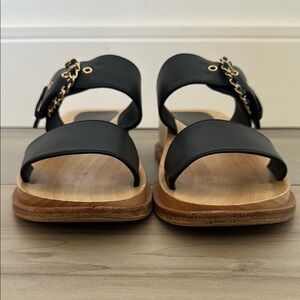 Experience the perfect blend of elegance and comfort with these CHANEL black mules. Featuring a sophisticated chain detail on the strap, these shoes offer a stylish touch to any outfit. The medium-height platform ensures a comfortable wear, making them ideal for both casual and chic occasions. I had these re-soled with a thin rubber bottom for comfort and traction. It was sold wood before.