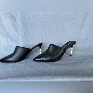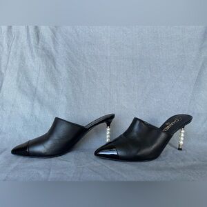 Chanel Black Leather Mules with Iconic Pearl-Embellished Heel