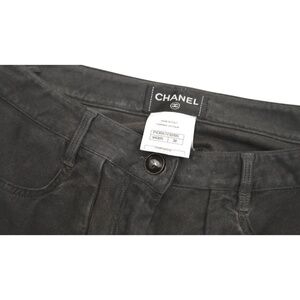 CHANEL Black Pants Pant Jeans Skinny Leg Pockets Zipper Stretch Sz 38