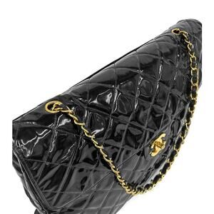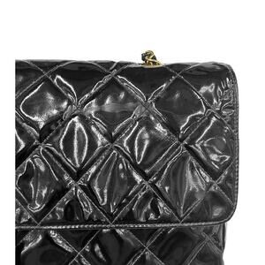 description: Chanel black patent matelassé shoulder bag. condition The bag is in good overall condition with no noticeable leather damage, except for minor scuffs. body - with micro scuffs. interior - No noticeable leather damage. corners - Minor scuffs. bottom - No scratches and wear. handle and strap - good condition with minor signs of use. Made in FRANCE / 4 Bags Policy Please note that due to the location, method, material and design of the bag, a deviation of 1 to 3 cm may occur. liquids containing alcoholic chemicals, such as perfume or hand sanitizer, may deteriorate the leather. vigorous scrubbing of the bag with leather cleaners can remove the dye, even if the bag is not dyed, so please avoid using cleaners as much as possible. regardless of whether the pendant leather is dyed or not, please be aware that it may become sticky when stored in hot and humid places, such as in a hot car in summer or near heating appliances in winter. due to the nature of pendant leather, it may become dyed if it is left in contact with other products for a long time, so be sure to store it individually in a dust bag. Please note that Elabutique is not responsible for any damage caused by improper care.