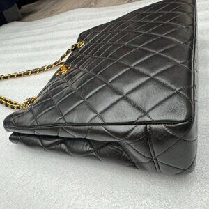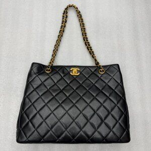 Elevate your collection with the CHANEL Black Quilted CC Tote in luxurious lambskin. Renowned for its signature quilted design and iconic interlocking CC logo, this tote combines timeless elegance with practical sophistication. Crafted from supple lambskin, it offers a smooth texture and durable finish. Its spacious interior seamlessly accommodates essentials, making it ideal for both everyday use and special occasions. A refined accessory that embodies CHANEL’s heritage of craftsmanship and style, perfect for the discerning connoisseur seeking understated luxury.
