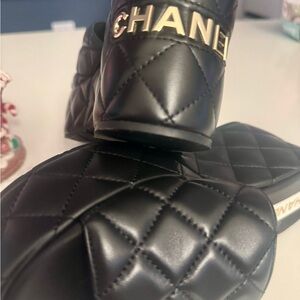 These CHANEL mules feature a sleek black color, diamond-shaped quilted pattern, and a thick platform sole for added height.
