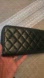 Luxurious black quilted wallet with signature CHANEL logo. Features a sleek zipper closure.