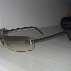 Elegant CHANEL sunglasses featuring rimless design. Chanel vintage #4047 Black temples with subtle logo detail. Gradient lenses for a modern touch. Was my moms in the early 2000s, authentic but no paperwork. Used but good condition. Case is extremely beat up but can be included