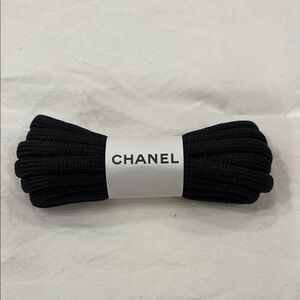 Luxurious black shoelaces by CHANEL. Enhance your shoes with style.
